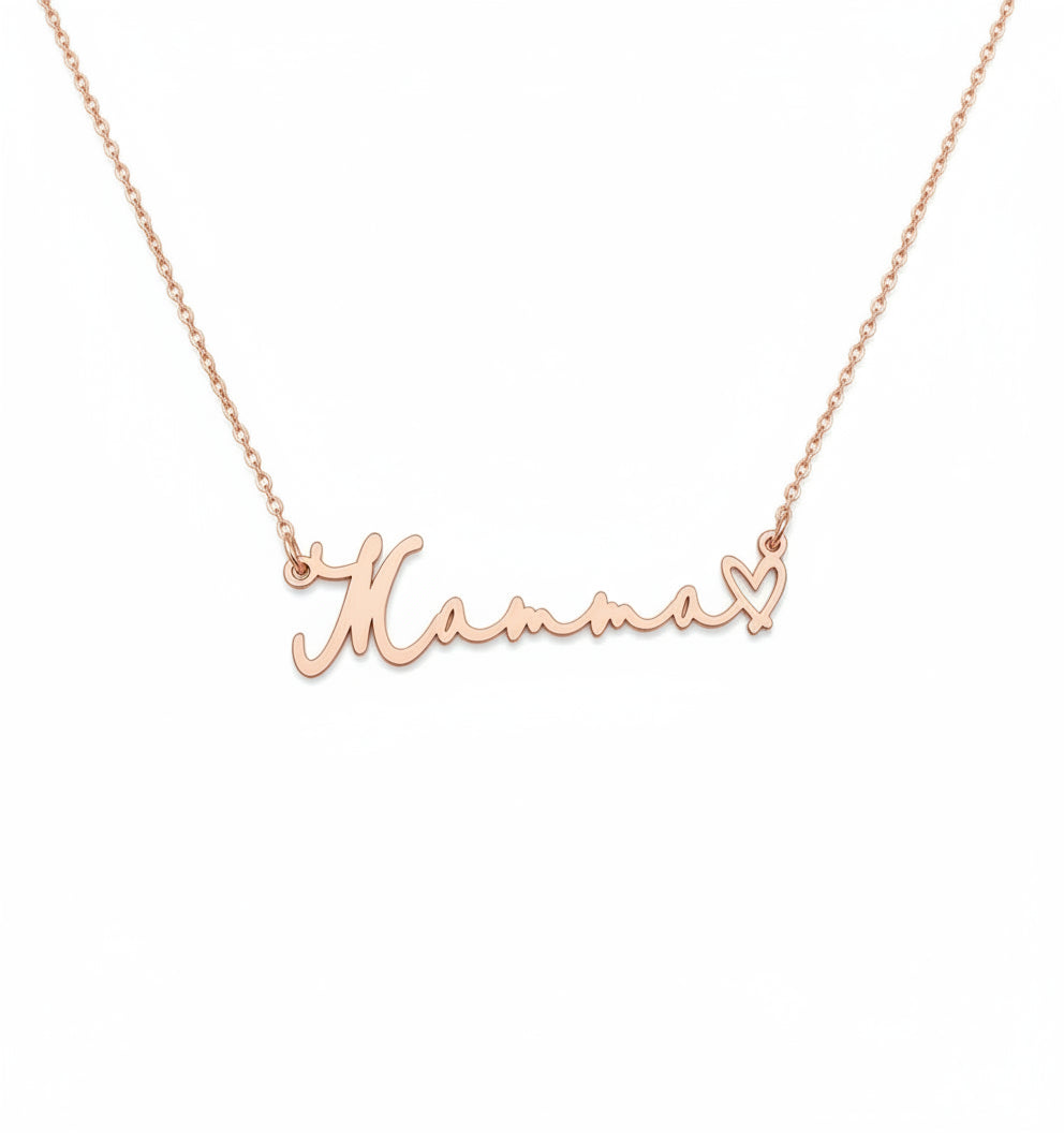 Collana con scritta mamma stile firma realizzata in argento925 con placcatura in oro 18kt (realizzazione 5 giorni lavorativi)