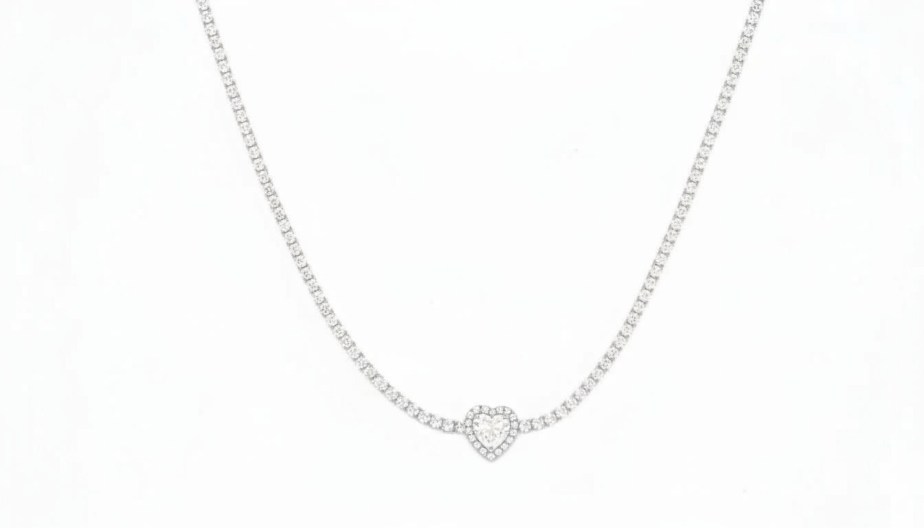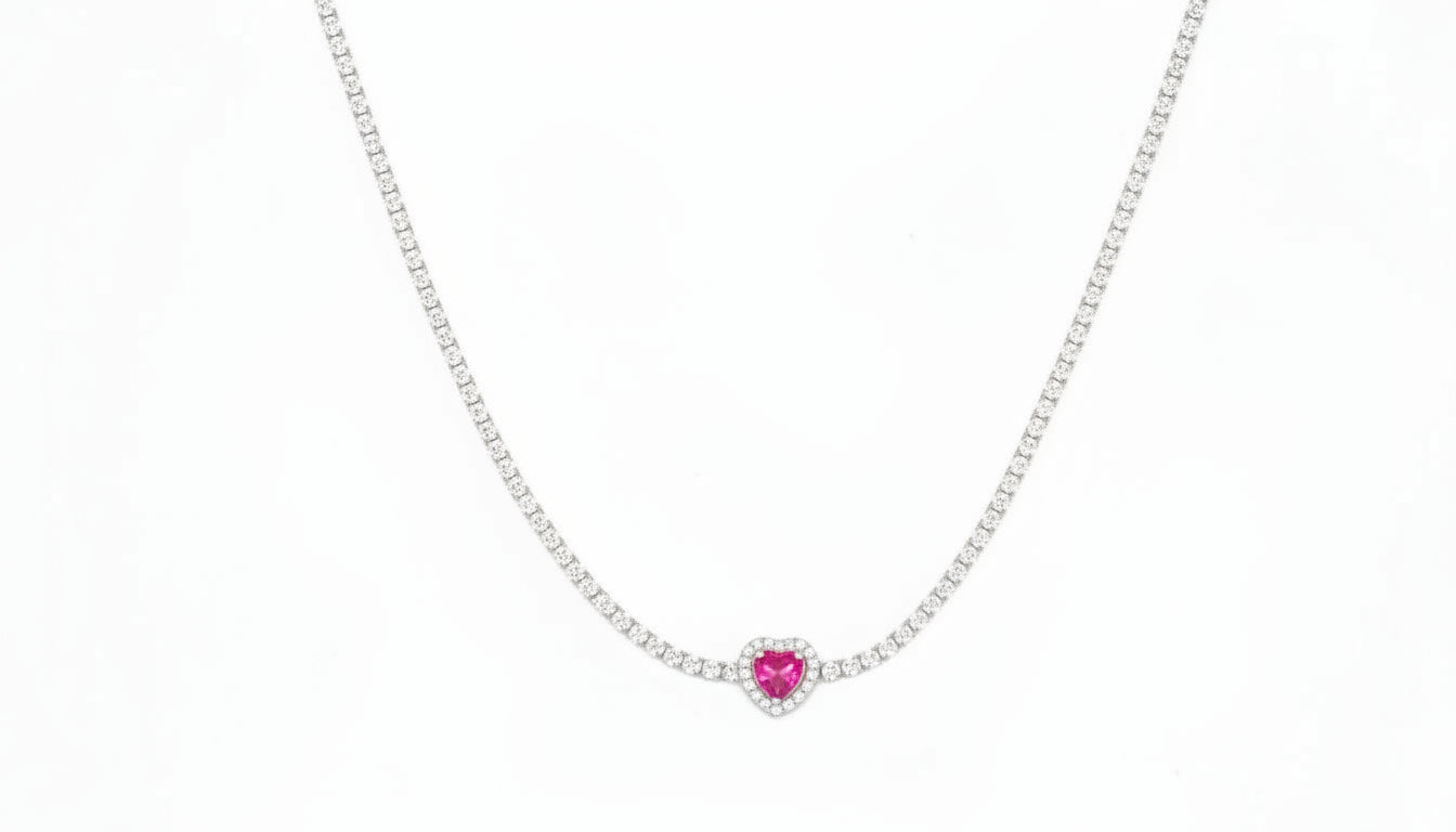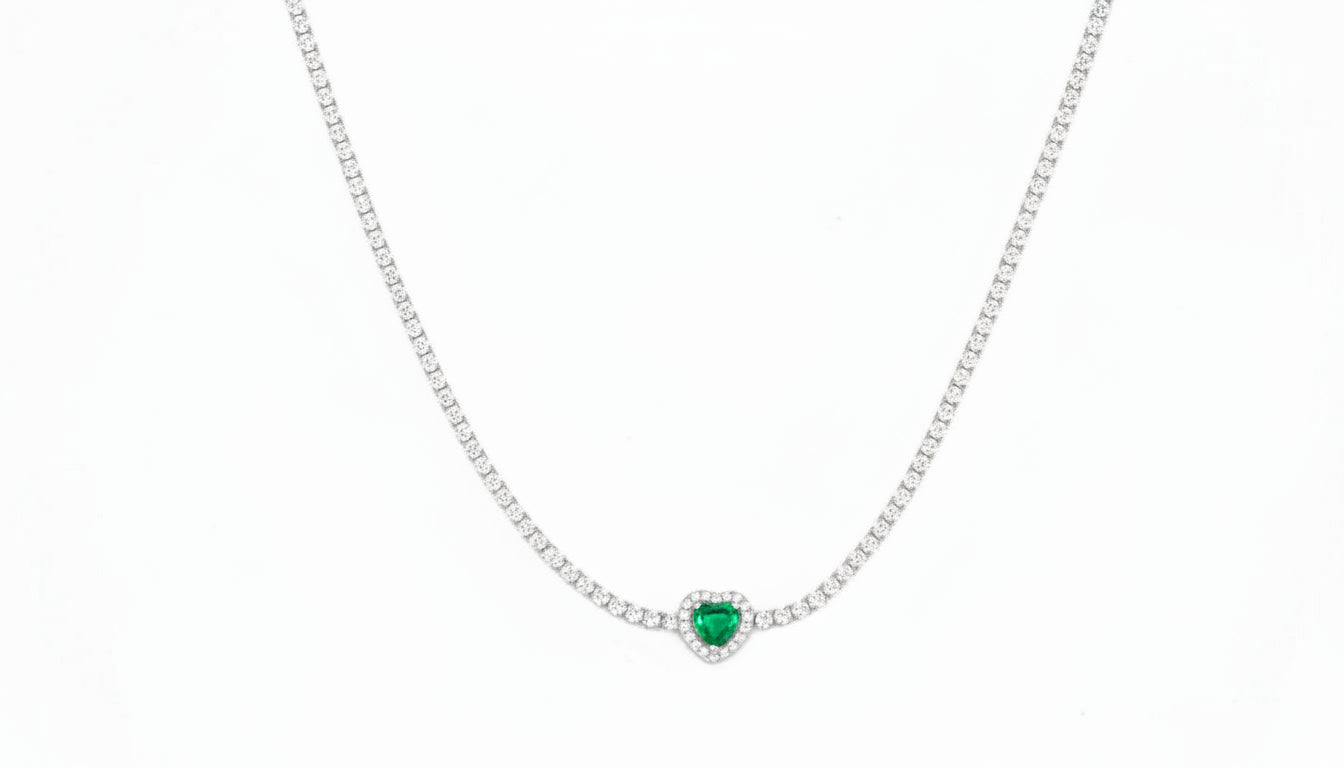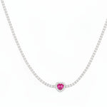 Collana tennis con cuori vari colori e contorno di zirconi ARGENTATO