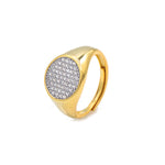 anello regolabile chevalier TONDO CON PAVE DI ZAFFIRI BIANCHI realizzati in argento925 con placcatura in oro18kt