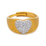 anello FASCIA LARGA RIGATA CON CUORE PAVE DORATO/ARGENTATO
