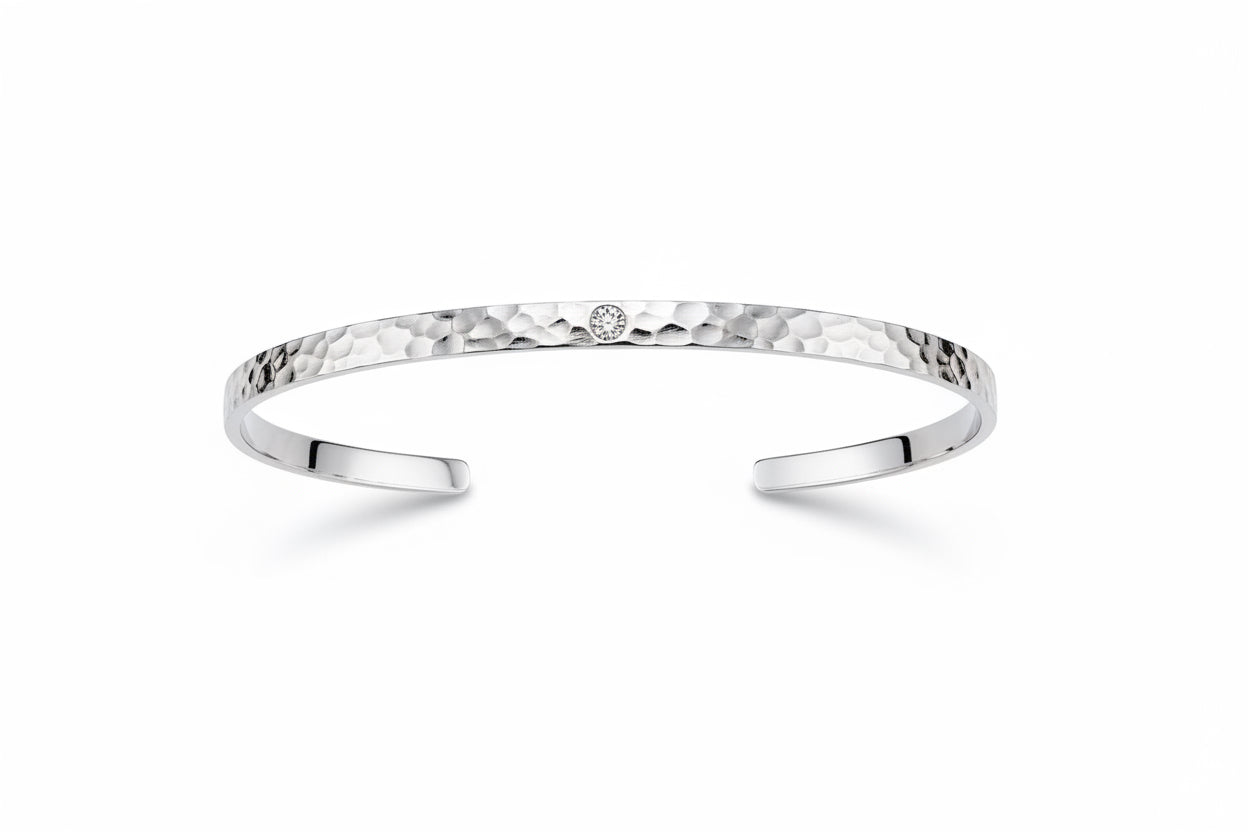 bracciale rigido regolabile in argento 925 con diamante naturale Fcolor da 0.05ct