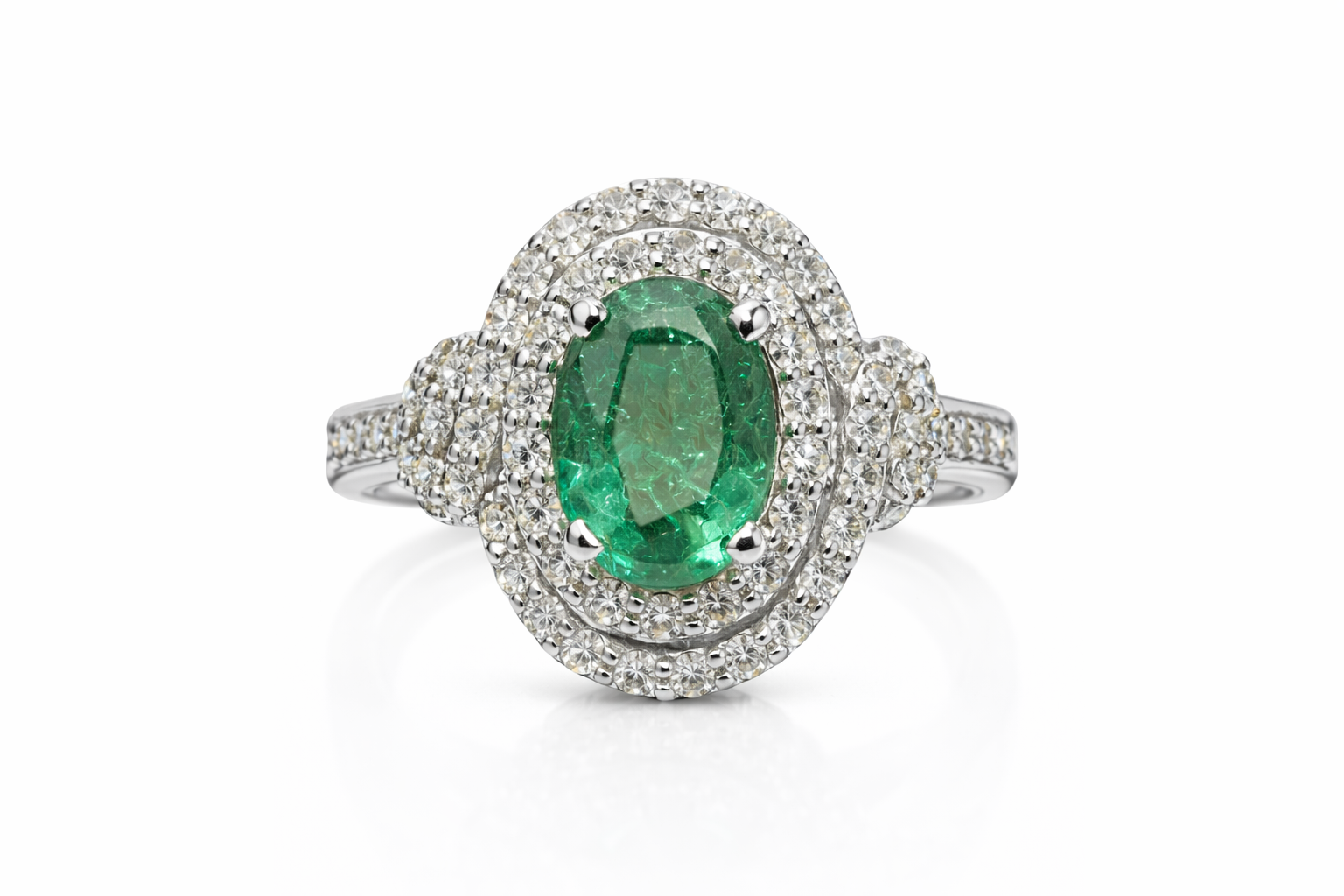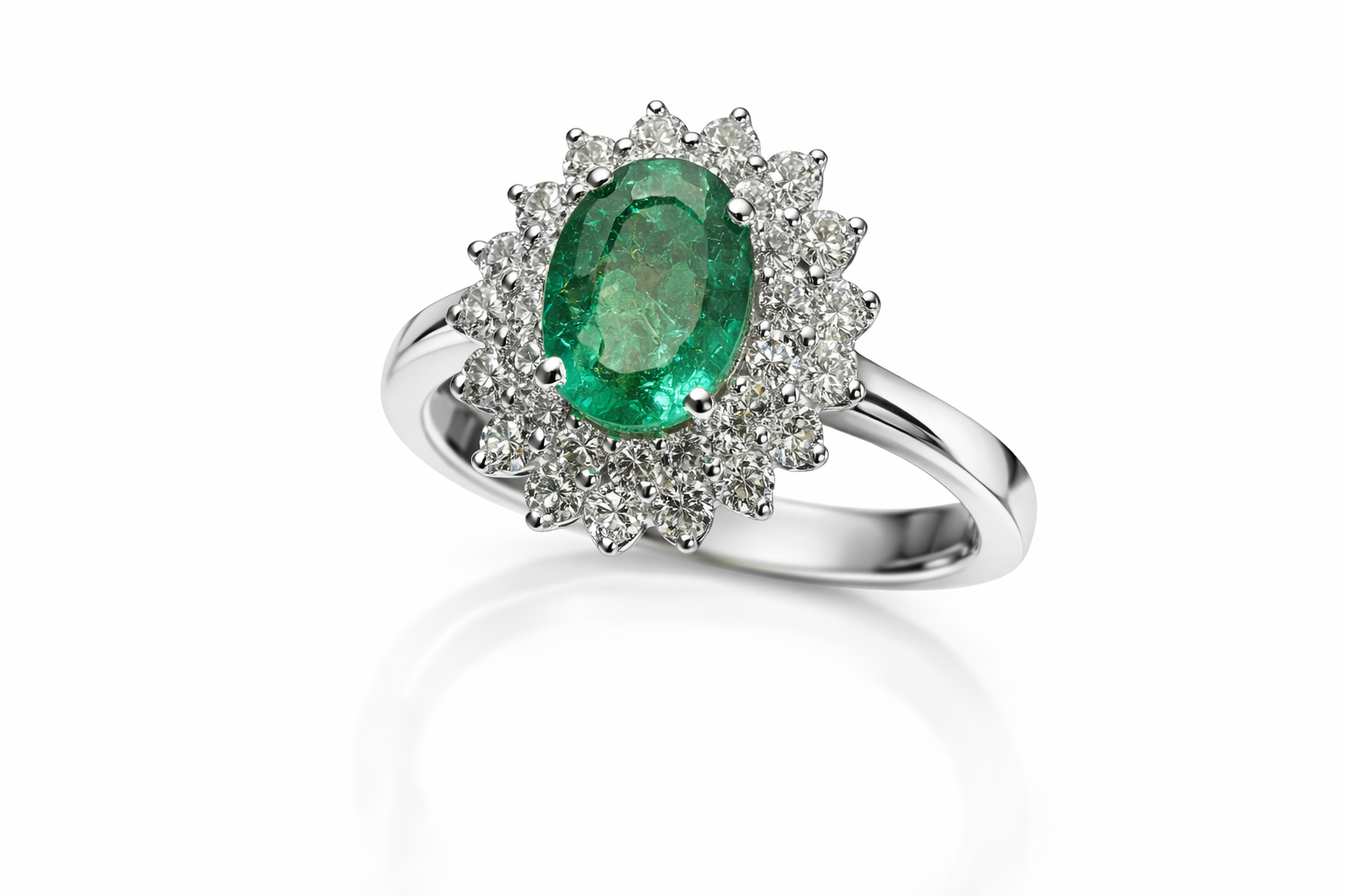 Anello Ovale modello intreccio di diamanti e smeraldo naturale