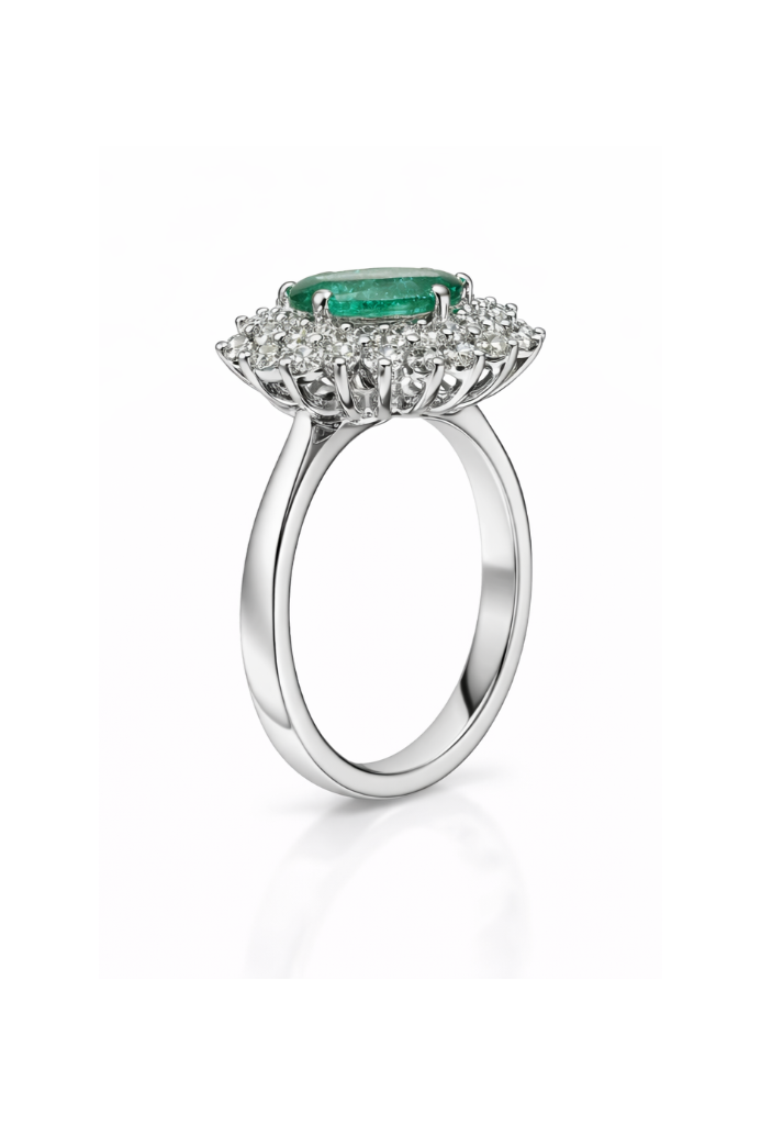 Anello modello kate classico con smeraldo naturale e diamanti