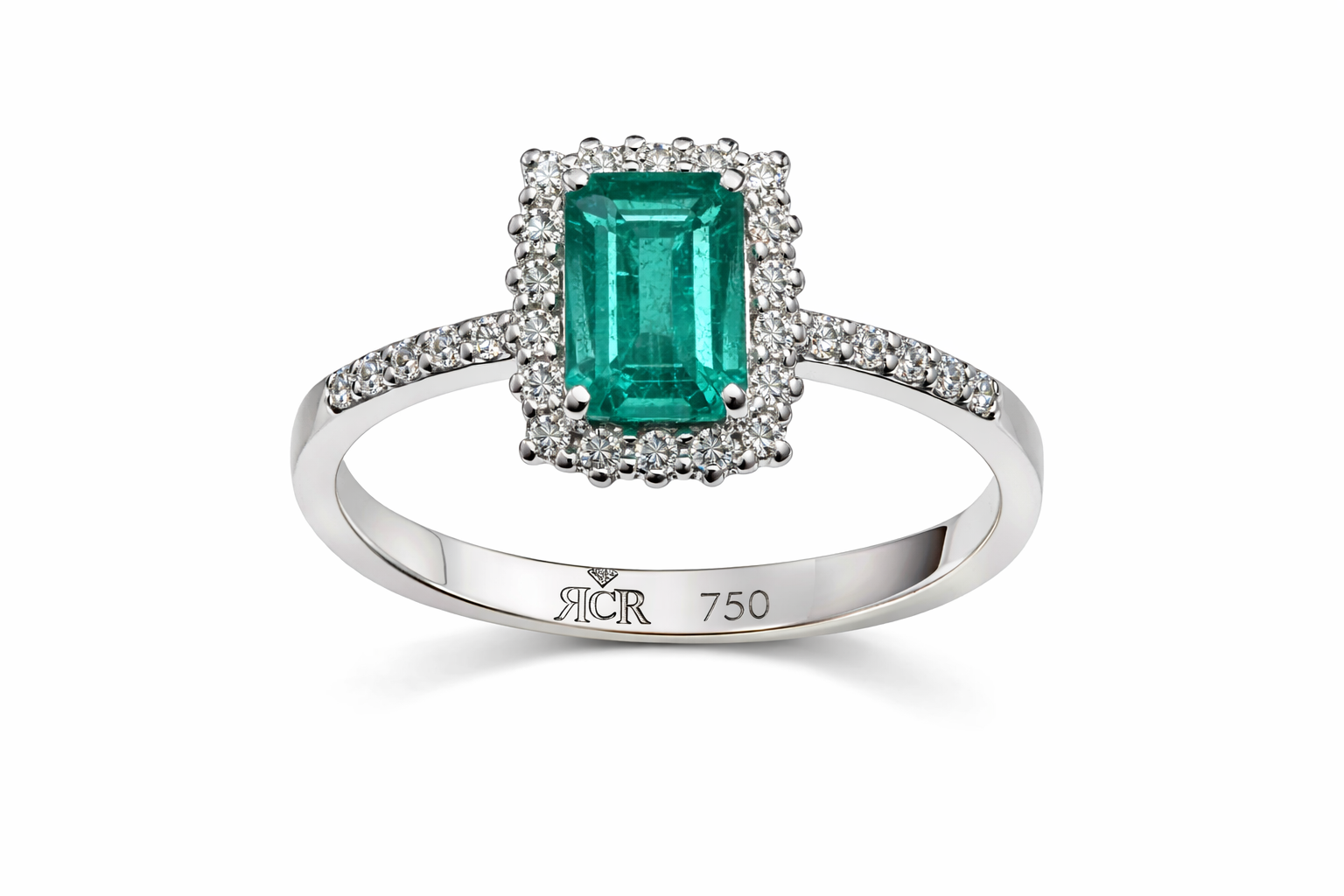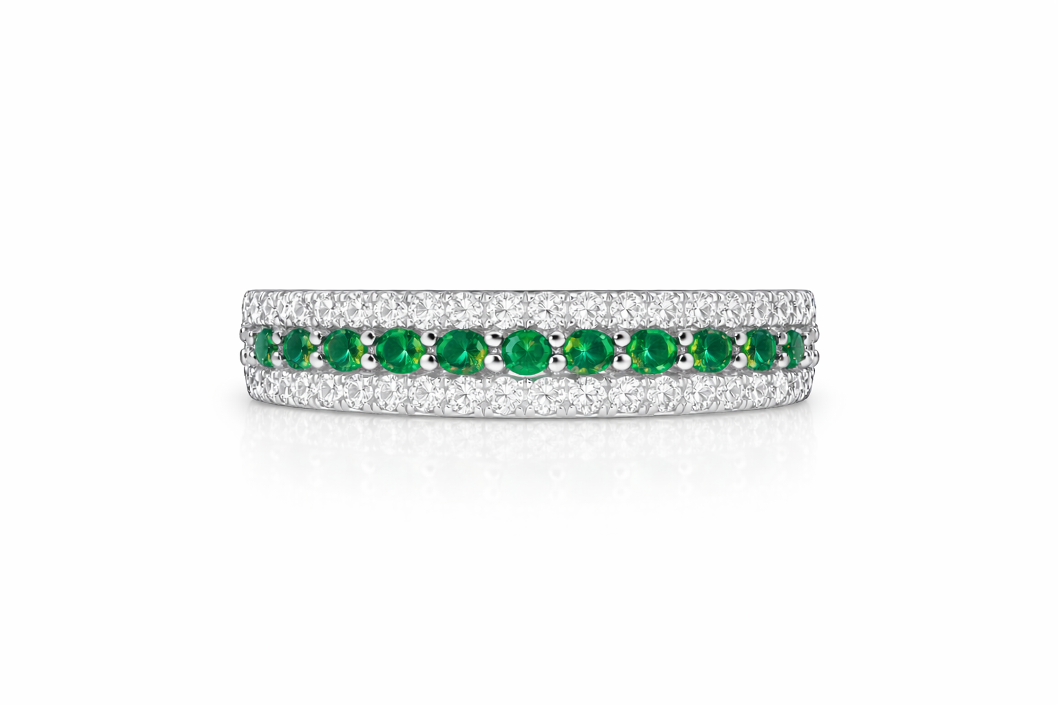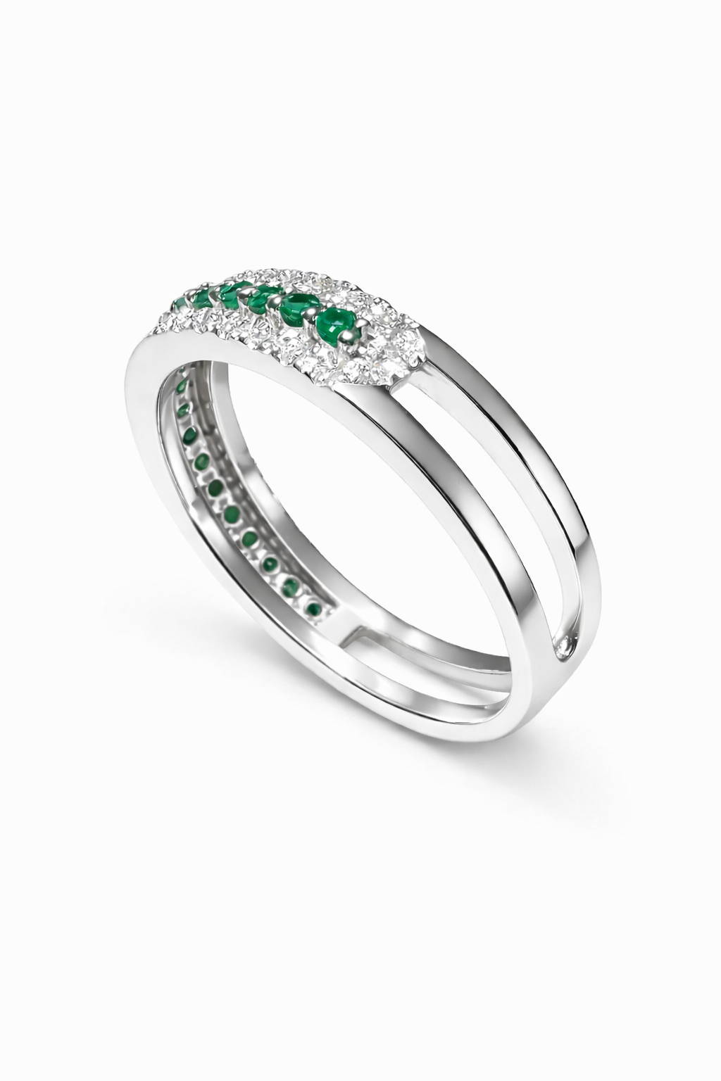 Anello modello kate con doppio giro di diamanti e smeraldo naturale
