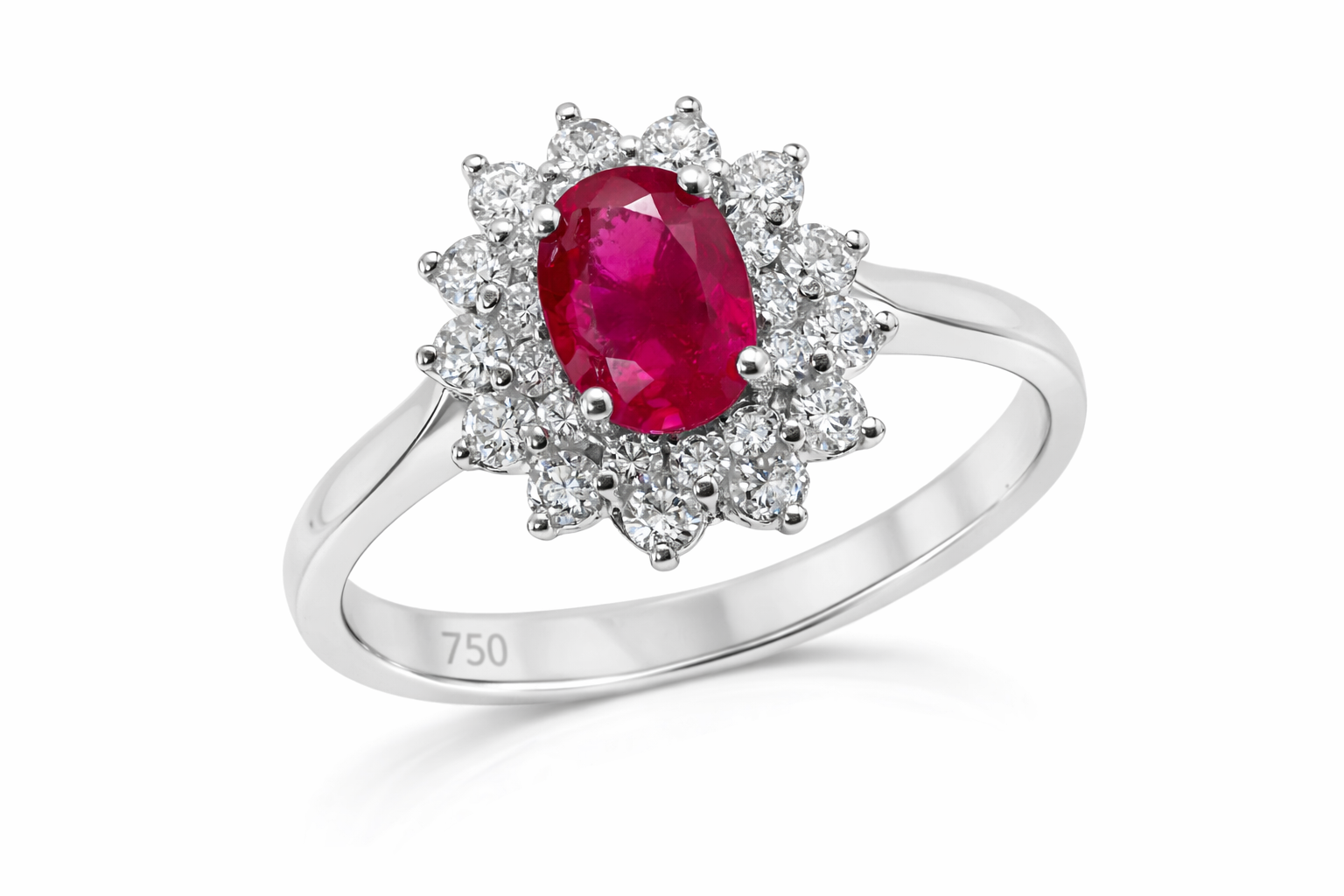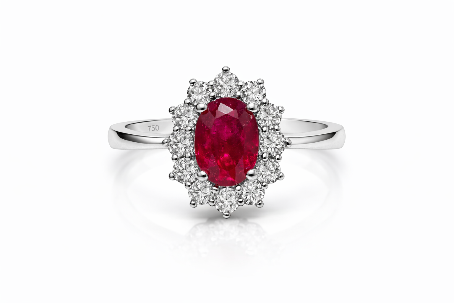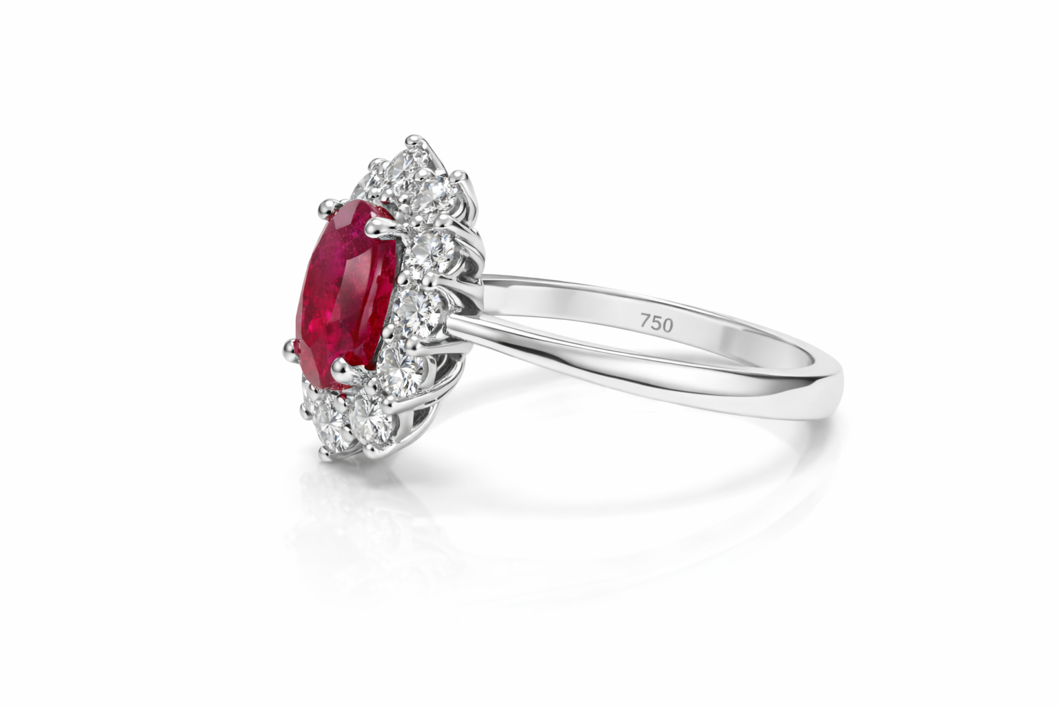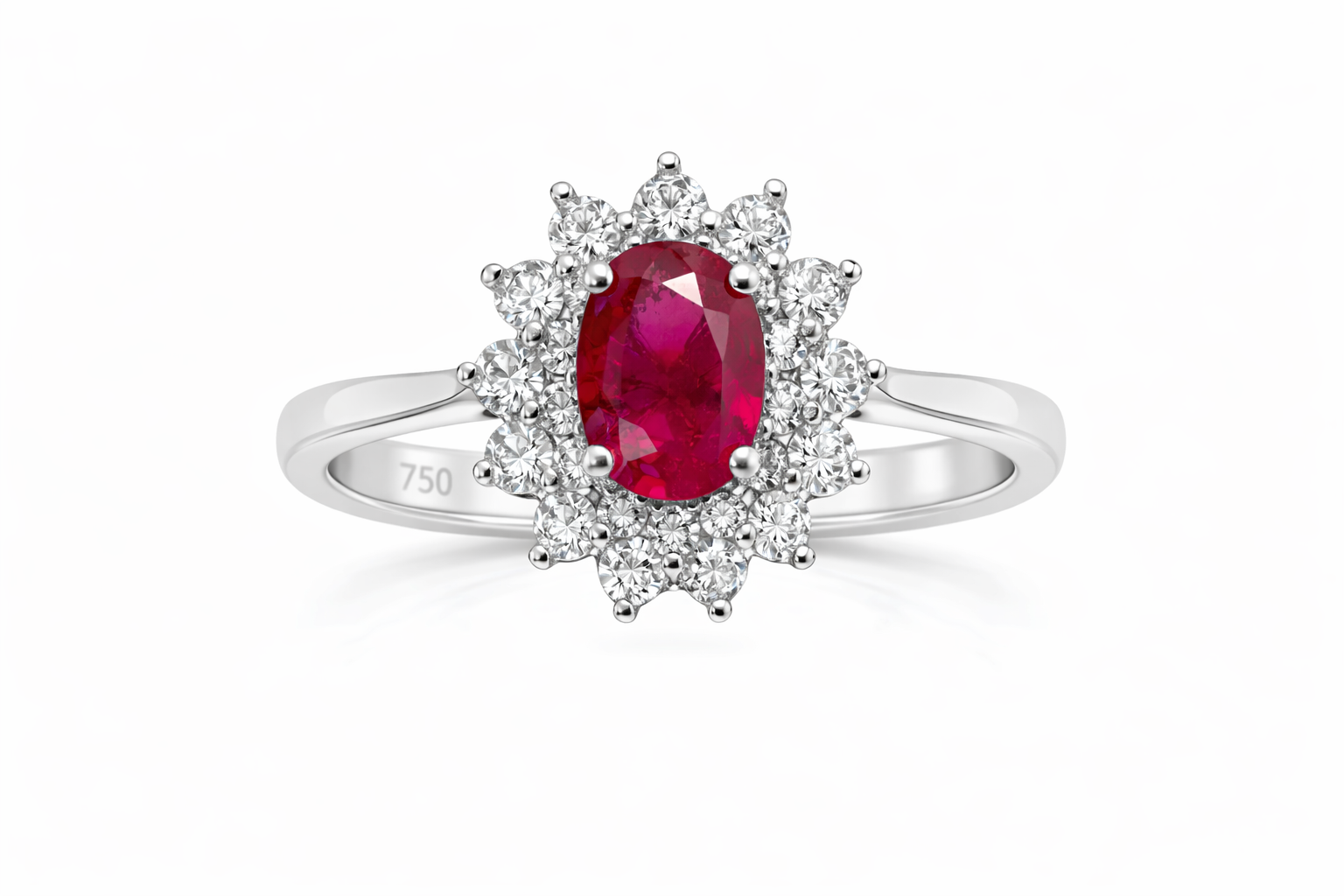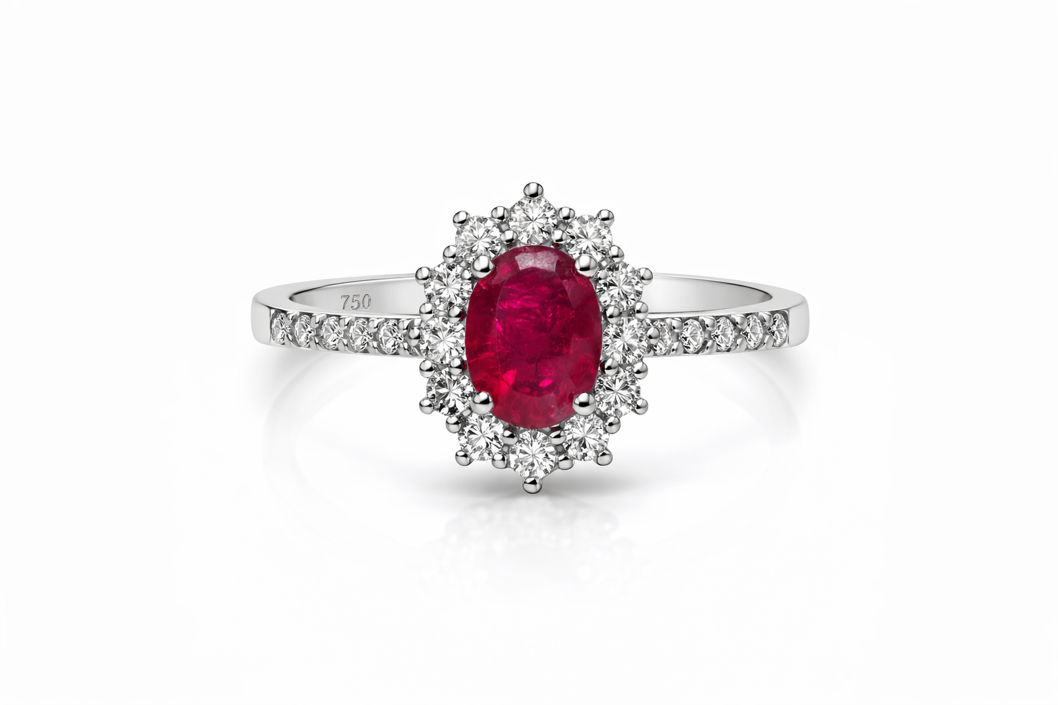 Anello Ovale modello intreccio di diamanti e rubino naturale