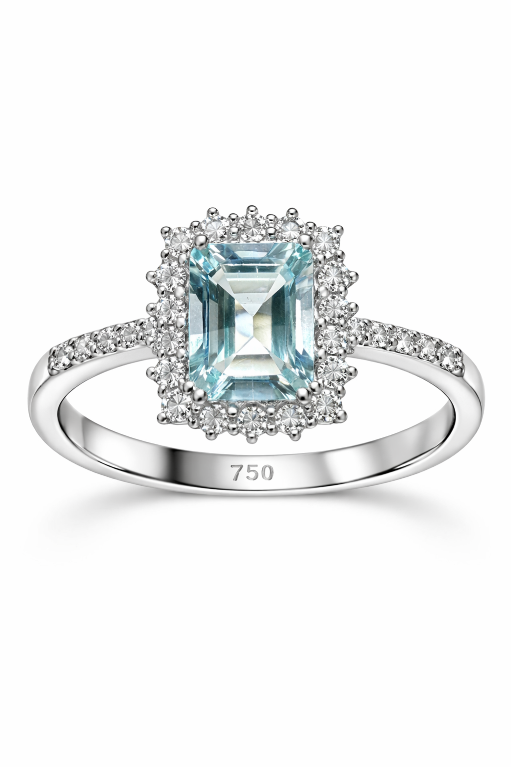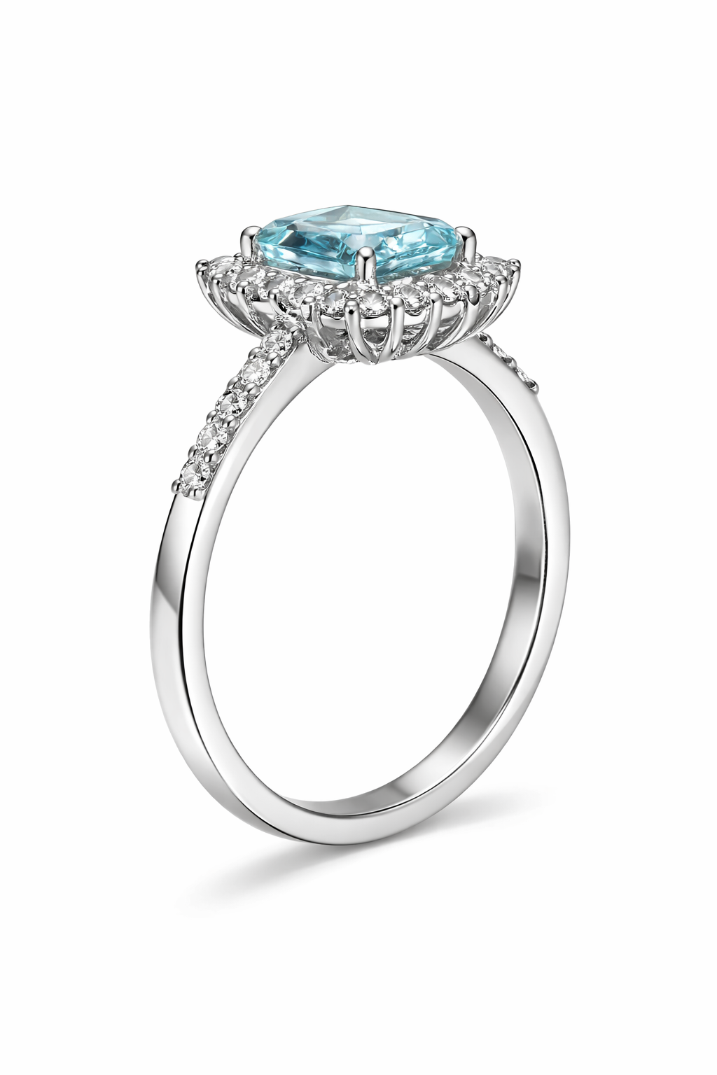 Anello con acquamarina taglio smeraldo naturale e diamanti