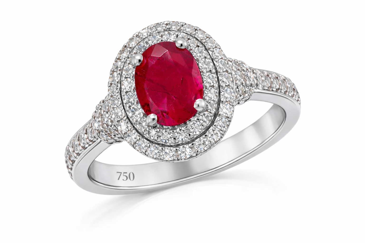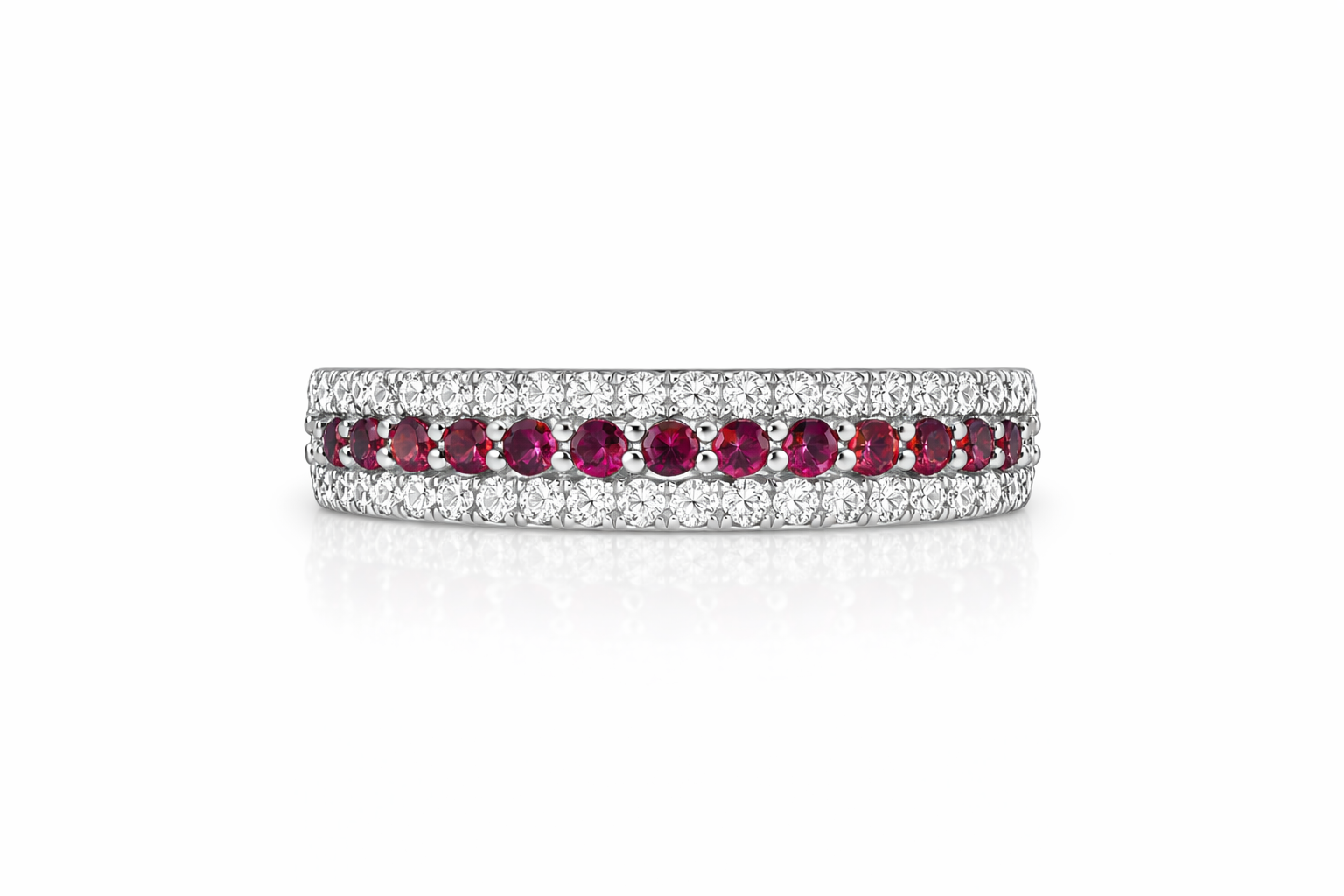 Anello modello kate con doppio giro di diamanti e rubino naturale