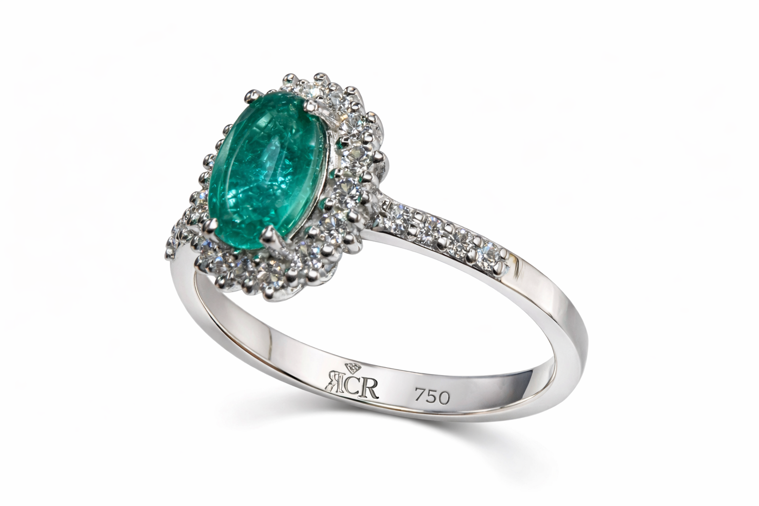 Anello modello kate ovale con diamanti e smeraldo naturale