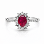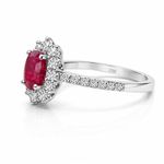 anello realizzato in oro bianco 18kt con rubino naturale da 0,48ct e diamanti Fcolor da 0.20ct