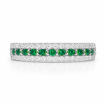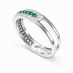 anello realizzato in oro bianco 18kt con smeraldi naturali da 0,42ct e diamanti Fcolor da 0,36ct