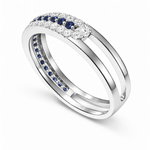 anello realizzato in oro bianco 18kt con zaffiri naturali da 0,42ct e diamanti Fcolor da 0,36ct